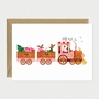 Un petit train conduit par le Père Noël lui même, rempli de tous les symboles des fêtes de fin d'année : les cerfs, les cadeaux et le sapin.